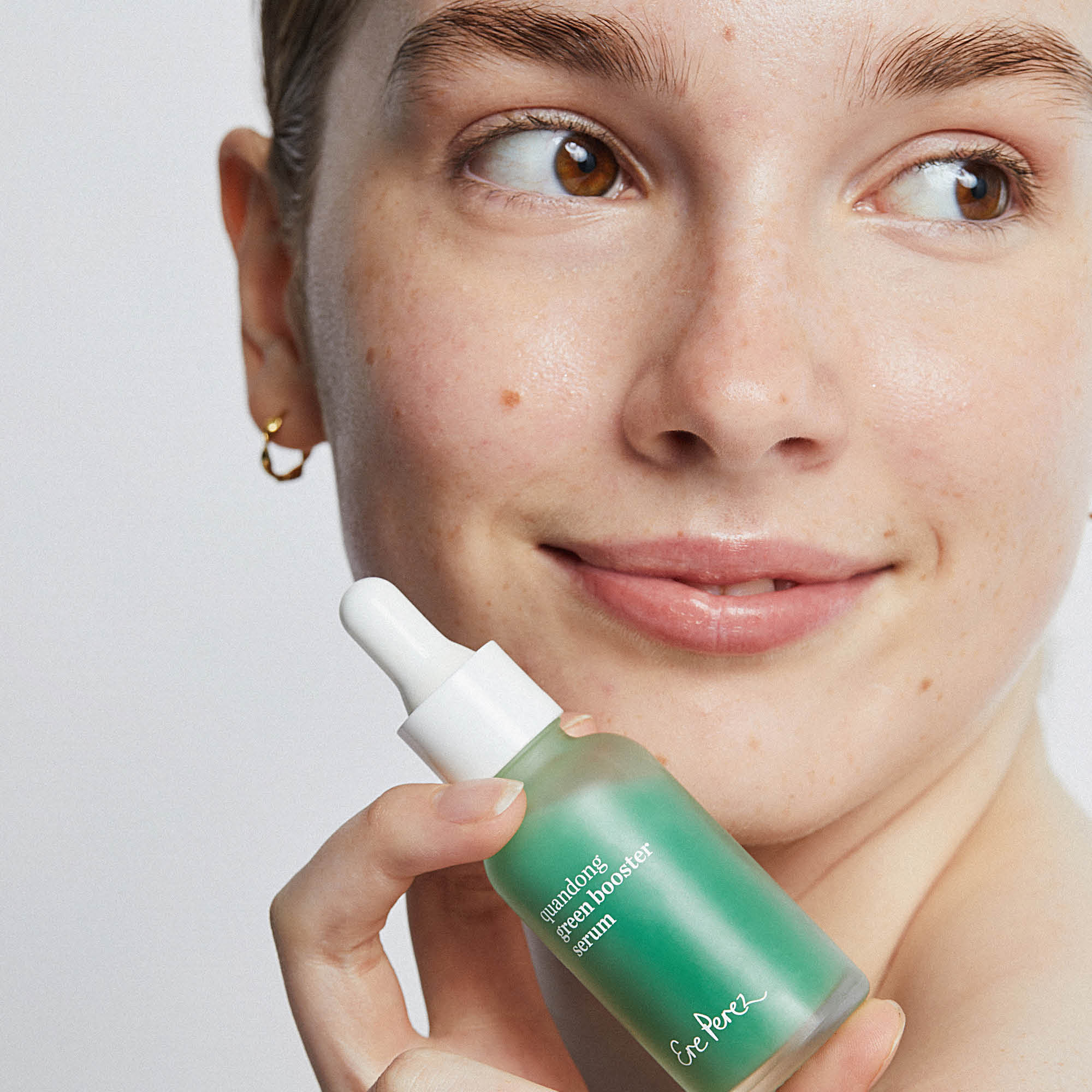 Quandong Green Booster Serum - aqua, glycerin*, levulinic acid, sodium levulinate, santalum acuminatum (quandong) fruit extract, medicago sativa (alfalfa) leaf extract, rubus idaeus (raspberry) seed oil, spinacia oleracea (spinach) leaf extract, simmondsia chinensis (jojoba) seed oil, helianthus annuus (sunflower) seed oil, chlorophyllin-copper complex, lactic acid, p-anisic acid, sodium hyaluronate (hyaluronic acid), resveratrol, caprylhydroxamic acid, tocopherol (vitamin e), xanthan gum.