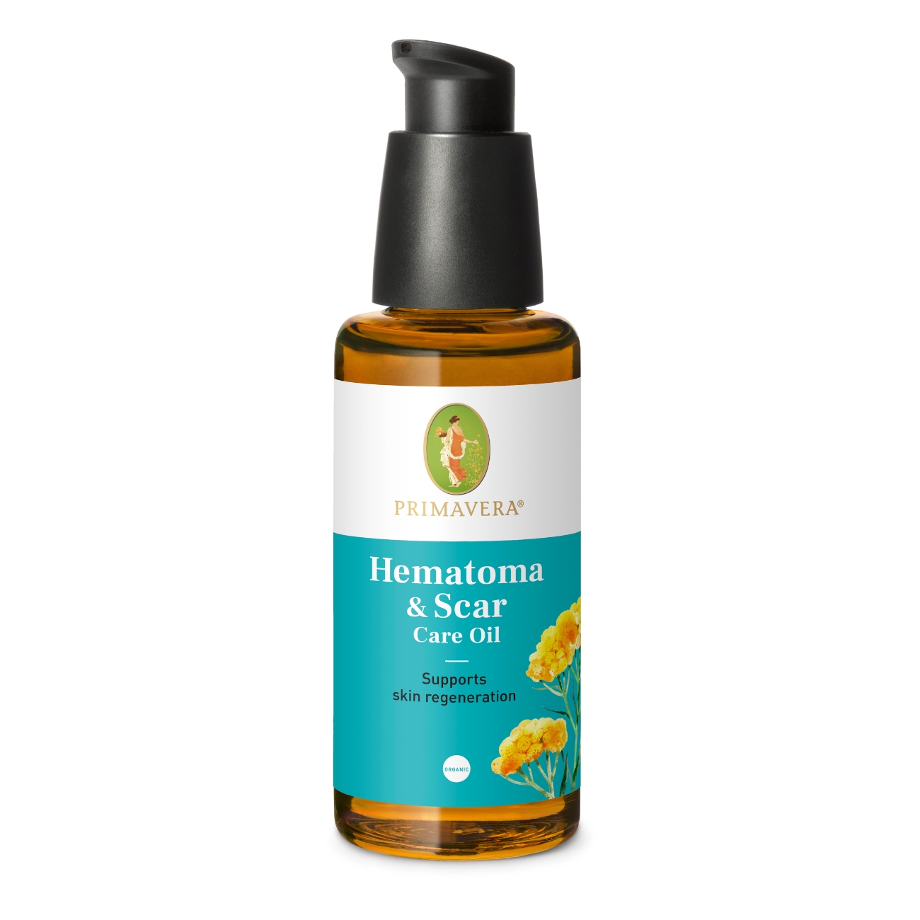 Olej na hematomy a jizvy Hematom and Scars oil má rostlinné složení v bio kvalitě a je určen pro speciální péči o namáhanou pokožku. Podporuje její regeneraci, zmírňuje pnutí, zmírňuje svědění a změkčuje jizvy.