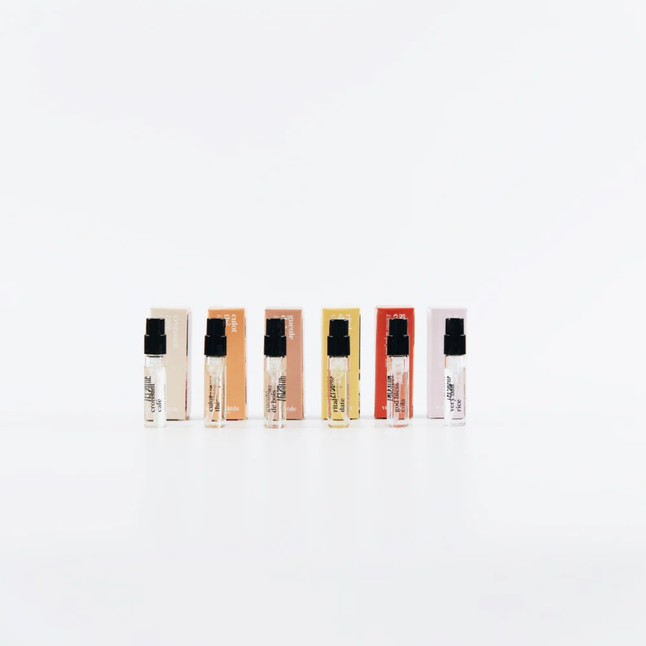 Discovery box obsahuje 6 x 2 ml lahviček oblíbených vůní Versatile Paris ve spreji. Konkrétně vůně: Rital Date, Croissant Café, Culot Thé, Gueule De Bois, God Bless Cola, Very Bad Rice.